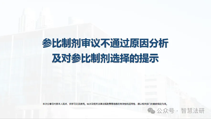 【PPT分享】参比制剂审议不通过原因分析及对参比制剂选择的提示