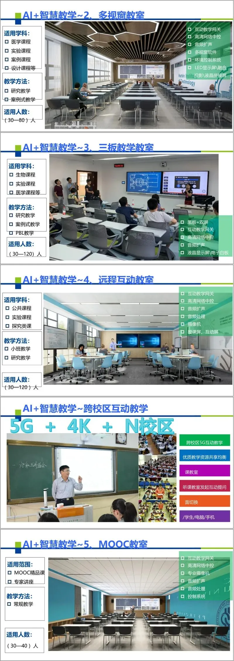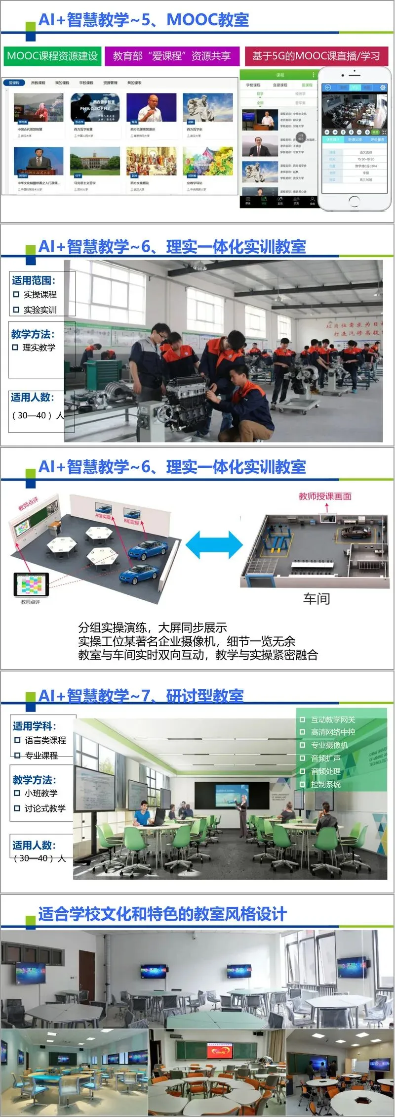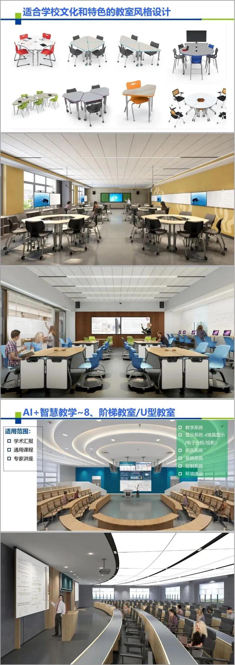 教学是校园的核心场景,方案对此进行了极为细致的规划。智慧教室不再是千篇一律的空间,而是根据学科特点、教学内容和模式进行了精细分类,包括常规智慧教室、研讨型教室、多视窗教室、远程互动教室、MOOC教室、理实一体化实训教室等十余种类型。例如,研讨型教室支持小组讨论和探索式学习;理实一体化实训教室则通过高清摄像机捕捉实操细节,实现教学与实践的紧密融合。