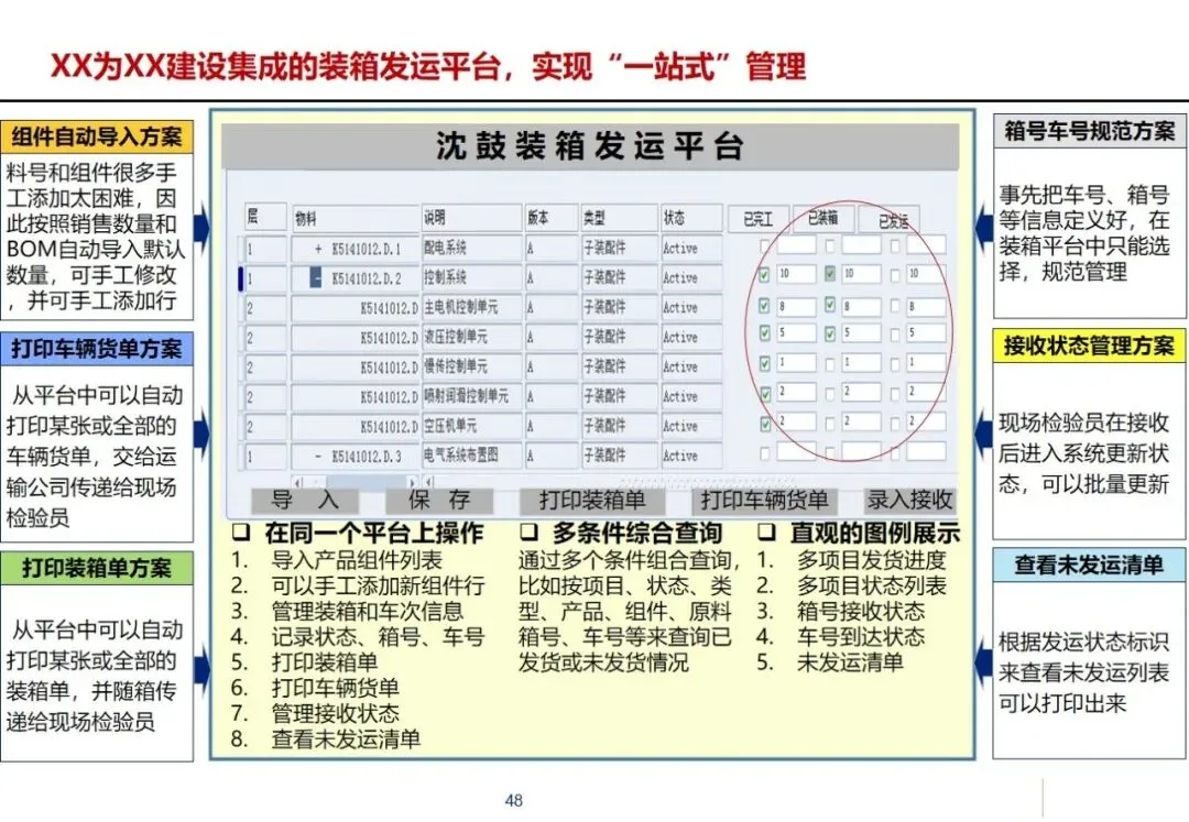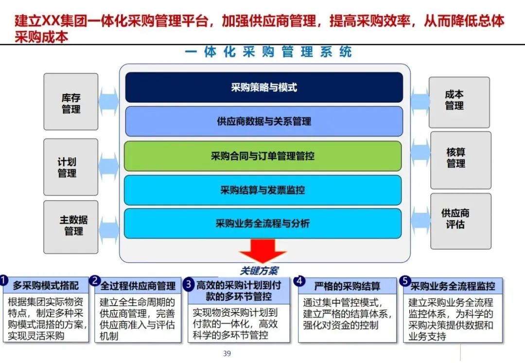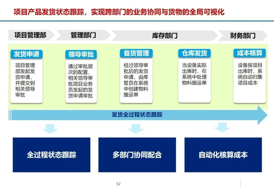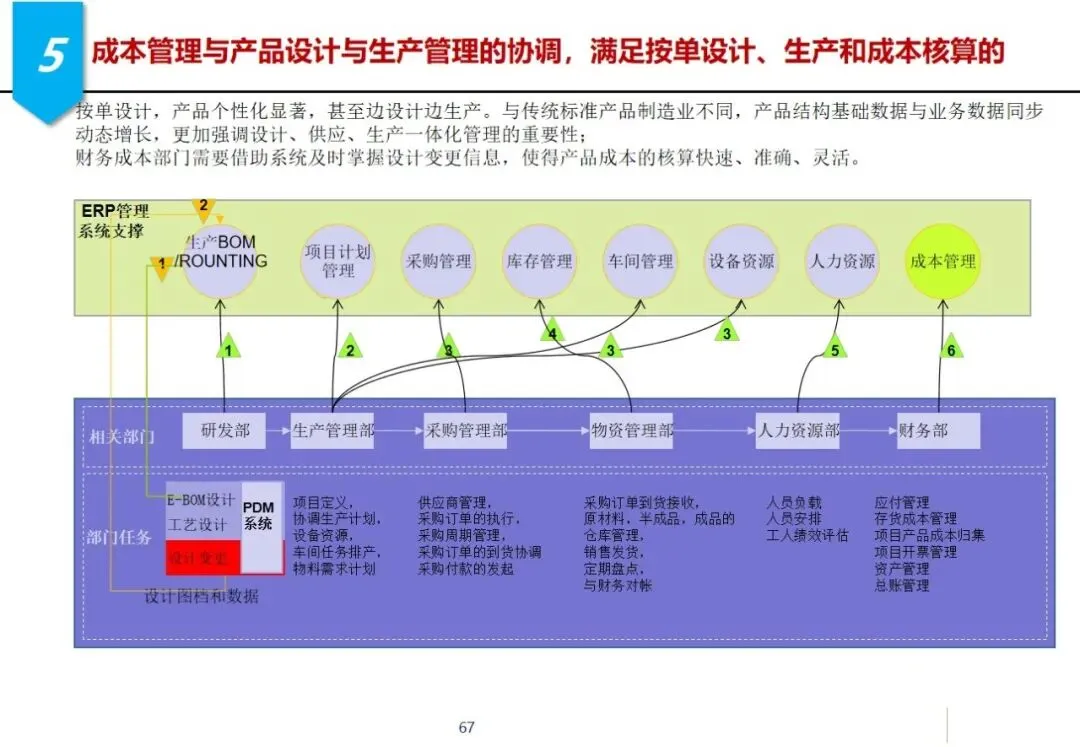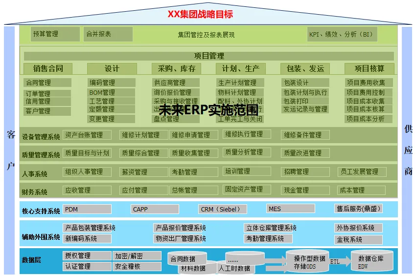 其核心解决方案涵盖了整个供应链:在销售管理方面,实现了对客户信息的集中控制和自动授信管理,深入整合了 ERP和 CRM;设计管理采用 PDM和 ERP相结合的方式,解决了企业在生产过程中进行成本计算的问题,并在企业内部实现了产品和零件的数据共享;采购管理:建立多模式集成采购平台;加强对供应商的全过程管理和采购过程的监督;财务管理按照“六统一”的要求,深入推进业务与财务一体化,建立工程“四算”控制系统和资金集中核算平台;质量管理、设备管理、人力资源管理、商业智能等模块同步运行,为企业的精益生产提供全方位的支持。