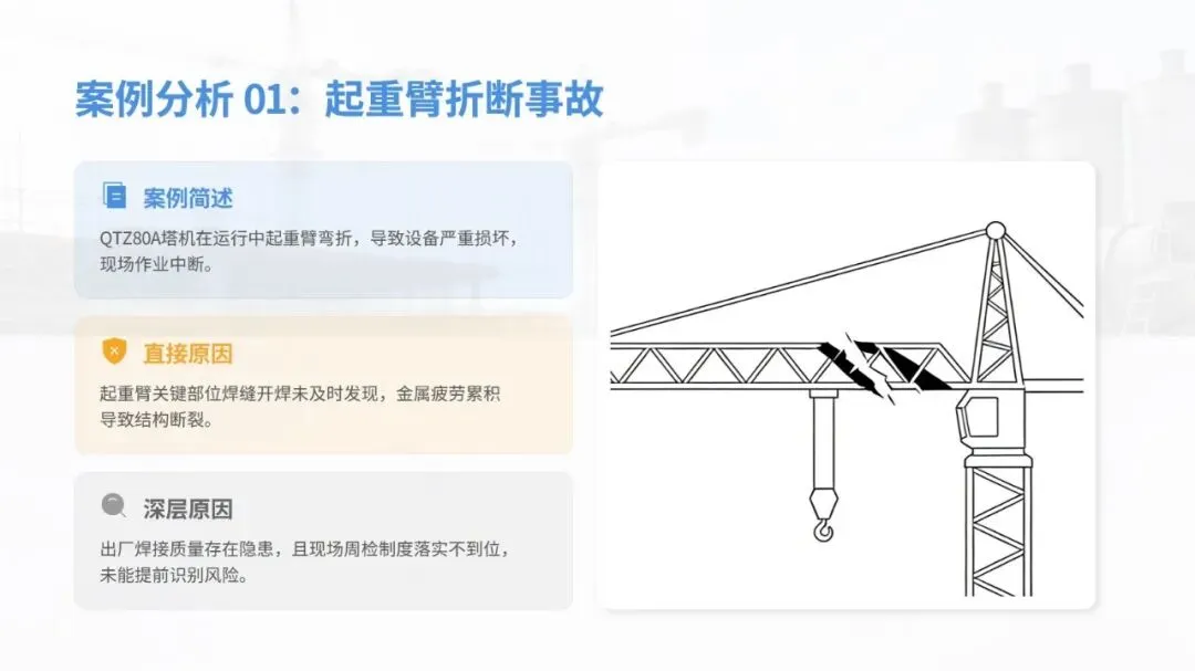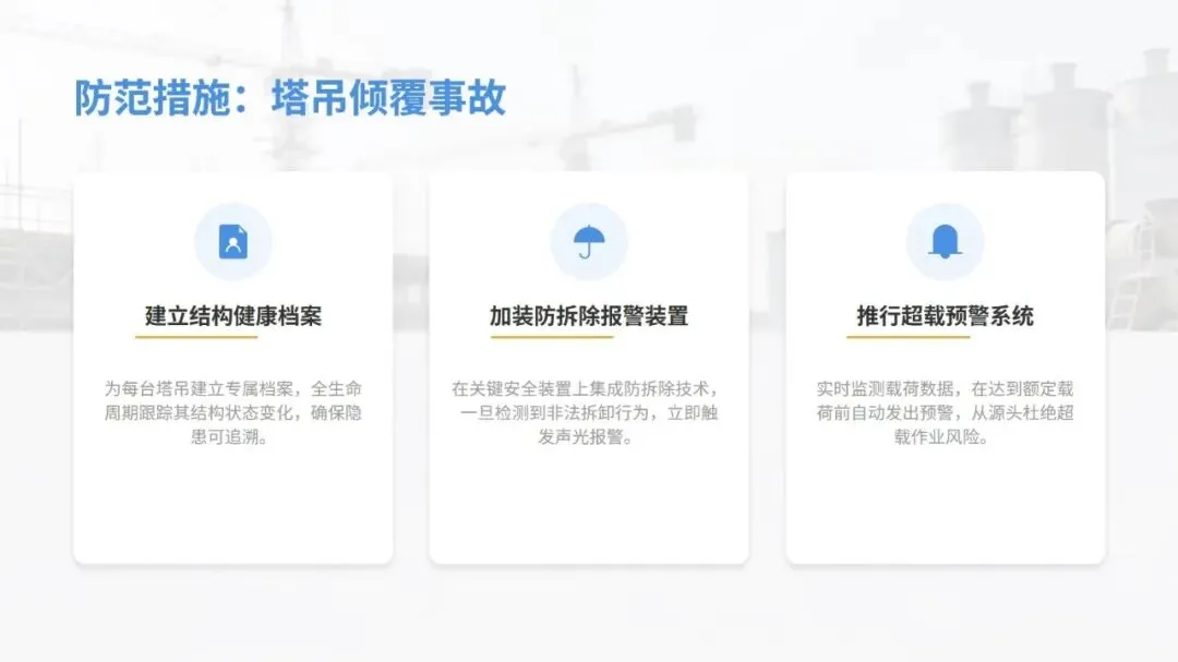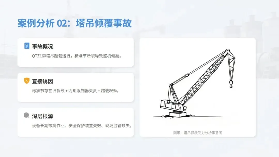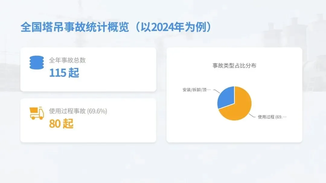全面回顾和前瞻当前塔式起重机安全管理现状,并提出了《塔吊安全深度分析报告》。报告以详实的行业统计数据为基础,客观地反映了我国塔式起重机的总体安全状况,指出我国塔式起重机的安全管理水平虽然有所提高,但塔式起重机的事故总数仍然较高,塔式起重机的日常使用中的风险防范和控制仍然是塔式起重机安全管理的重点。