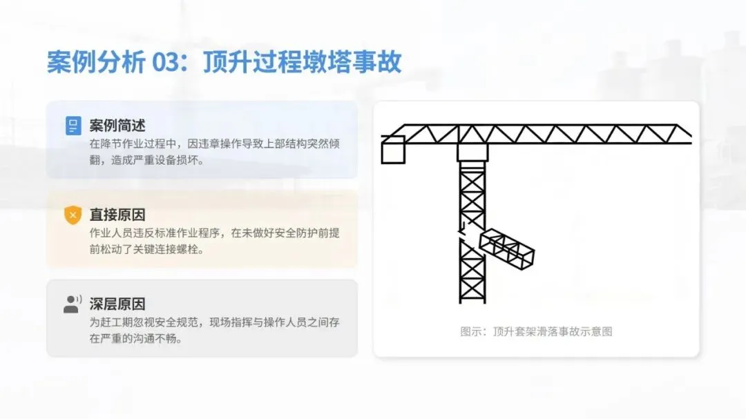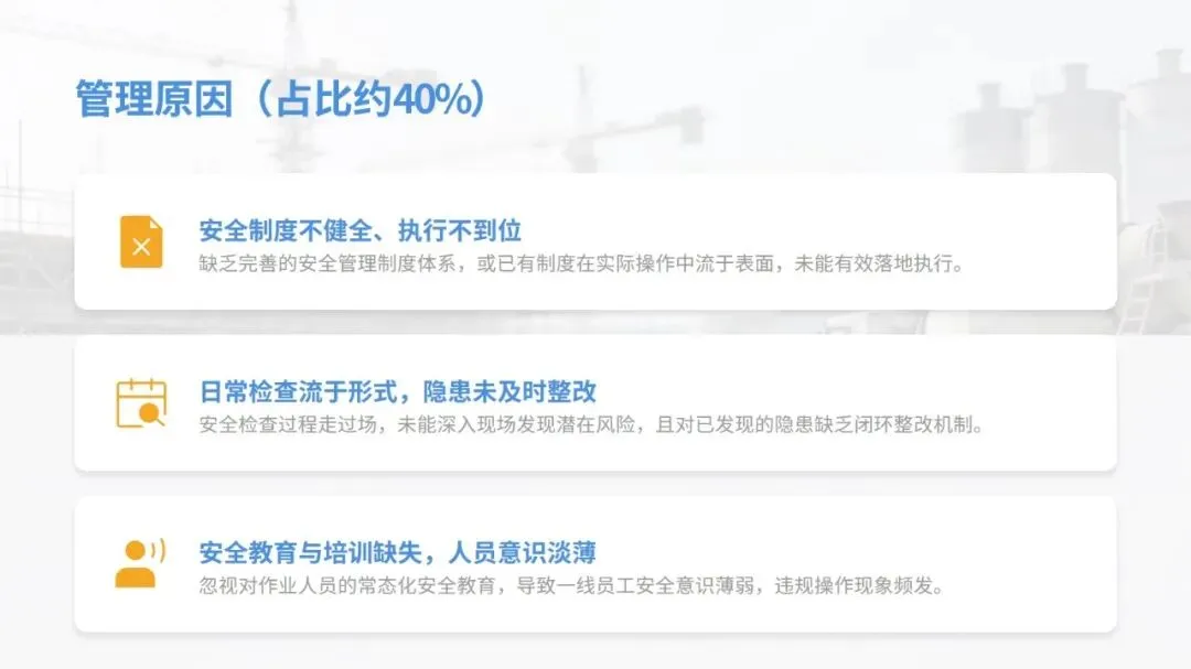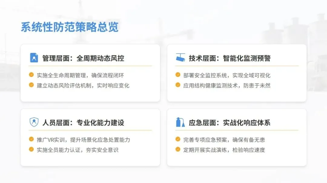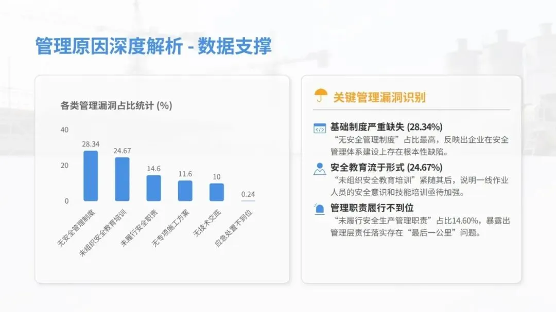 通过对多起事故案例进行系统梳理后,该报告准确地找出了造成事故频繁发生的四个核心问题:第一,安全管理制度存在薄弱环节,制度实施和隐患排查不成闭环;二是存在设备健康管理盲区,急需加强老旧装备的维修和重要安全设施的有效监测;三是从业人员的安全素质不均衡,违章操作和操作失误仍然是事故发生的直接原因;四是施工环境复杂,风险叠加,对施工现场组织协调和突发事件处理能力的要求较高。