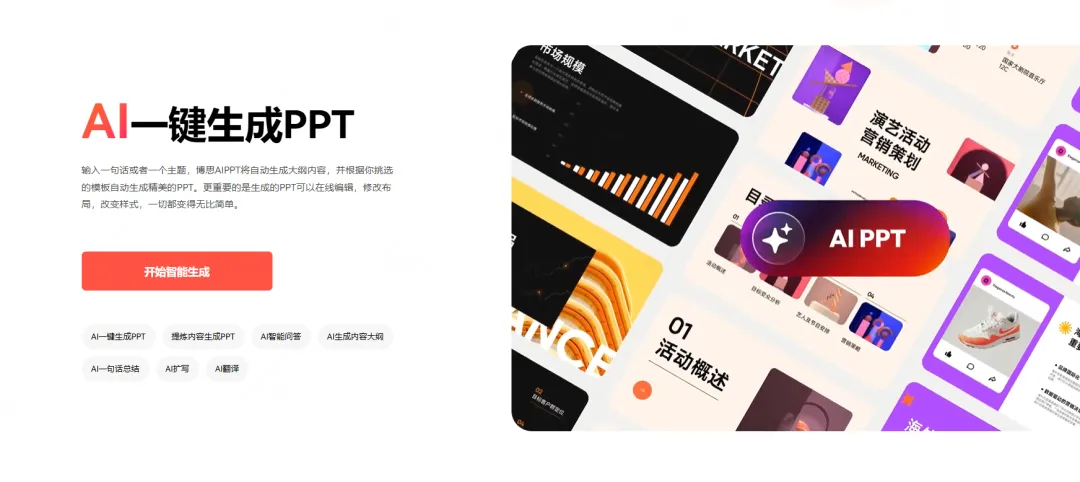 这类工具专门为幻灯片生成而设计,核心流程是输入内容→AI处理→输出PPT。它们在模板丰富度、生成速度和导出格式上有明显优势。01 博思AIPPT
