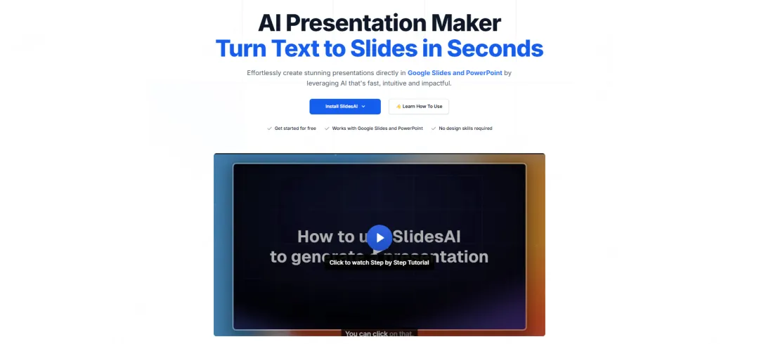 核心定位:海外流行的新一代演示文稿生成平台,主打文档+幻灯片+网页三合一的内容创作理念。生成速度极快Gamma的AI引擎经过高度优化,从输入主题到生成完整PPT通常只需30秒左右。测试显示,生成一份包含15页内容的商业计划书演示,平均耗时不到1分钟,是同类工具中最快的之一。排版算法智能Gamma采用了先进的自适应布局算法,能够根据内容量自动调整每页的版式结构。当某页文字较多时,系统会选择双栏或分栏布局;当内容以图片为主时,会自动采用大图展示方案。这种智能排版避免了信息过载或空间浪费的问题。在线分享体验优秀生成的PPT可以直接以网页链接形式分享,接收者无需下载任何软件即可在浏览器中查看。Gamma优化了网页端的演示效果,支持全屏播放、页面导航、内容搜索等功能,体验接近原生应用。模板设计现代化Gamma的设计团队明显受到了现代Web设计趋势的影响,提供的模板风格更加简洁大气。大量留白、几何图形、渐变色块的运用,让生成的幻灯片充满设计感,特别适合科技公司和创意行业使用。多语言支持完善虽然是海外产品,但Gamma对中文内容的处理相当成熟。支持中英文混排,字体渲染效果良好,不会出现乱码或显示异常。界面也提供了中文版本,降低了国内用户的使用门槛。04 SlidesAI