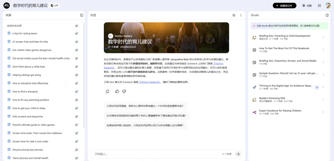 这类工具本身不是专门的PPT生成器,但能够利用大语言模型的能力产出高质量的结构化内容,为PPT制作提供素材和框架。06 Notebook LM
