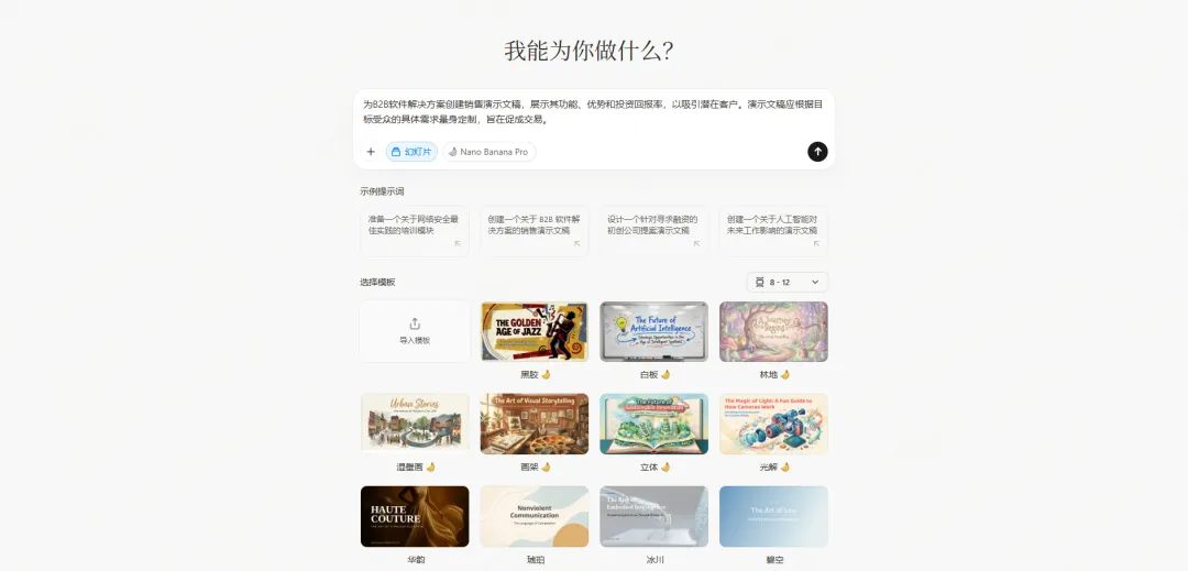 核心定位:专注于智能排版的演示文稿工具,通过AI自动调整布局,确保每页都保持设计美感。自适应布局引擎BeautifulAI的核心技术是其独有的自适应布局系统。当你添加或删除内容时,页面会自动重新排版,保持视觉平衡。比如在一页中添加第三个要点,系统会自动调整三个要点的间距和大小,确保整体美观,完全不需要手动调整位置。设计规则自动遵循BeautifulAI内置了专业的设计原则,包括对齐、对比、留白、层次等。在你编辑幻灯片的过程中,系统会自动应用这些规则。比如文字和图片会自动对齐,重要信息会通过大小或颜色突出,留白会根据内容量自动调整,这些细节让最终的PPT看起来专业度很高。主题切换无损BeautifulAI支持一键切换整套PPT的设计主题。即使已经完成了全部内容,也可以尝试不同的配色方案和排版风格,系统会自动重新渲染所有页面,不会破坏原有的内容结构。这种灵活性让你可以快速尝试多种设计方向,找到最合适的呈现方式。智能图表美化当你插入数据图表时,BeautifulAI会自动应用符合整体设计风格的配色和样式。柱状图的柱子宽度、折线图的线条粗细、饼图的标签位置,都经过精心计算,确保图表既美观又易读。协同编辑流畅BeautifulAI支持实时多人协作,团队成员的修改会立即同步。评论和反馈功能允许在特定页面或元素上留言,沟通效率比传统的邮件往来高很多。版本历史功能可以回溯任何历史版本,避免误操作导致的内容丢失。导出质量优秀BeautifulAI导出的.pptx文件质量非常高,所有设计元素都能完整保留。在PowerPoint或Keynote中打开后,可以继续编辑,字体、配色、动画等都不会出现兼容性问题。10款PPT生成工具横向对比