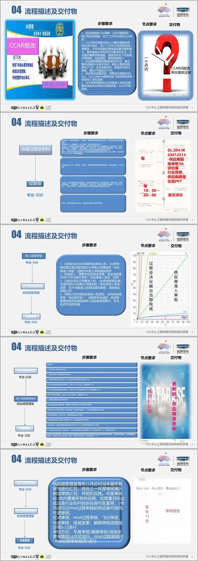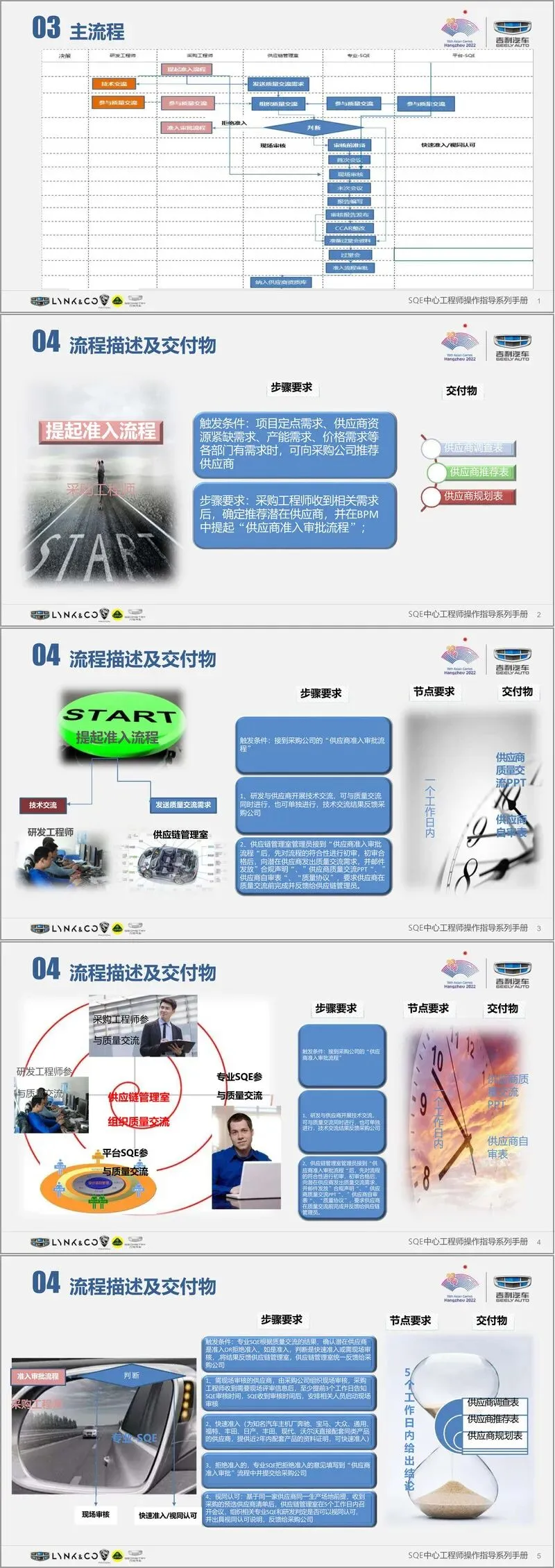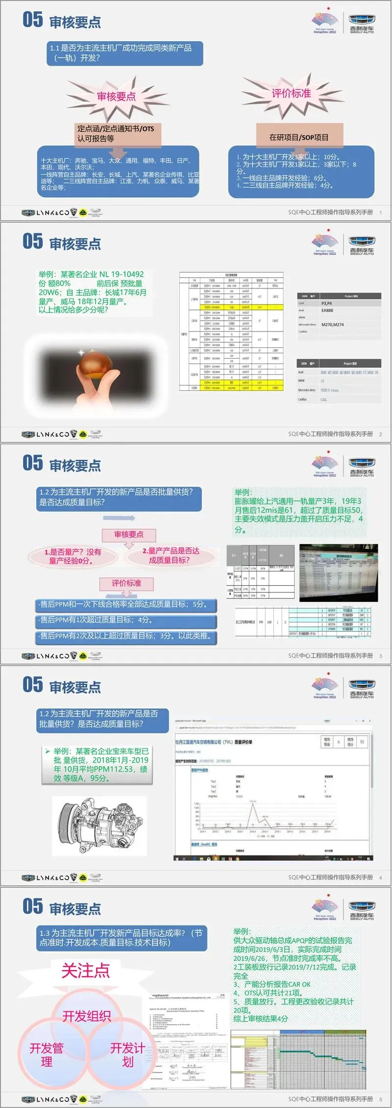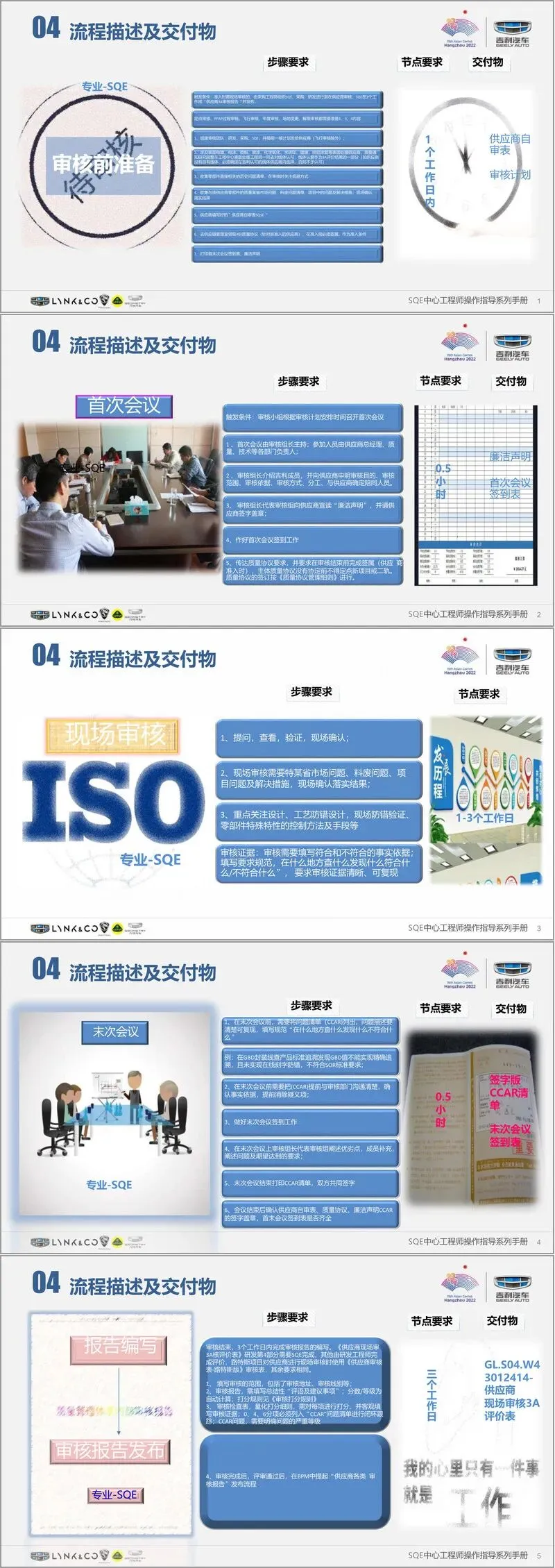 手册通过明确的评价标准、操作步骤、交付物要求及大量实例,为 SQE 工程师提供了全面、可操作的审核指南,确保供应商准入与质量管控工作的标准化、规范化,助力吉利汽车坚守质量领先战略。