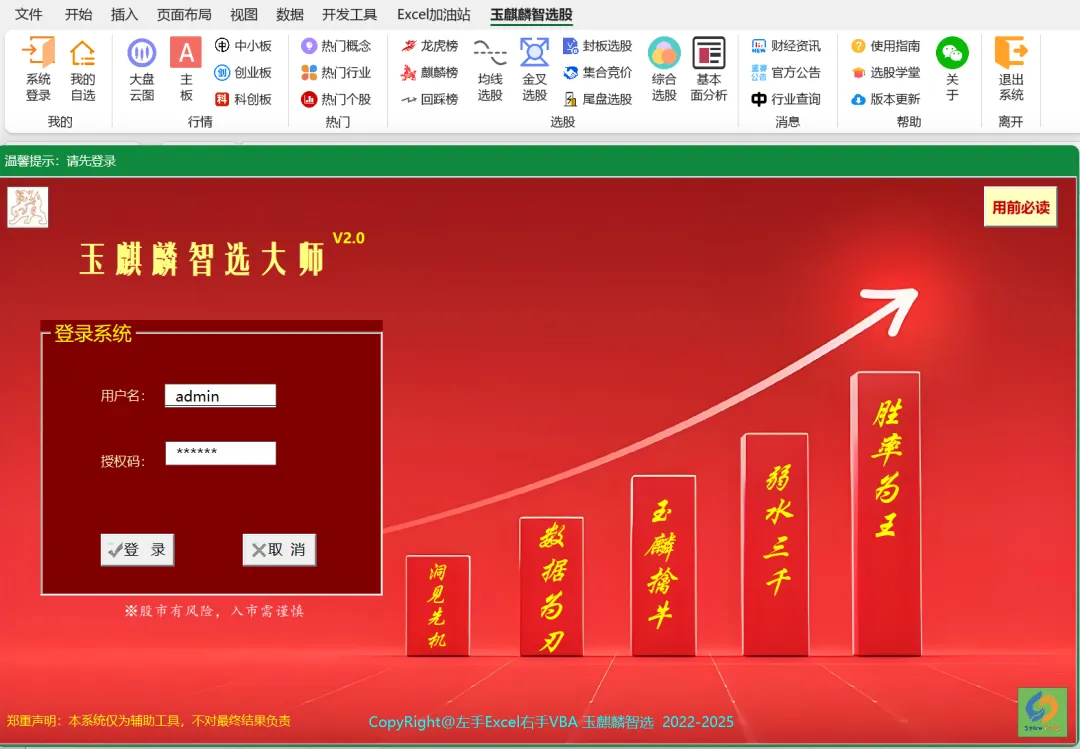 基于Excel+VBA+Mysql,通过对行情数据和相关经营指标进行建模与分析,整合股市中流行的理论与选股思路,将基本面指标和技术指标量化为可对比、可衡量的选股标准,并进行一键选股。