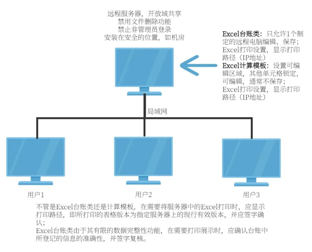 l 用户对存放EXCEL网络共享(或专用电脑)中的文件读取方式不应为下载到本地打开使用(FTP不被接受) |