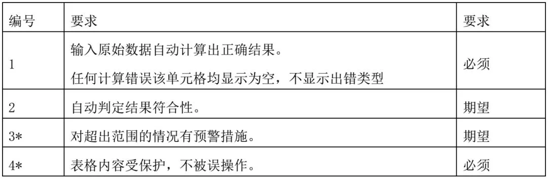 在符合要求情况下人工判定应与电子表格判定一至。在不符合要求情况下,输出空单元格。