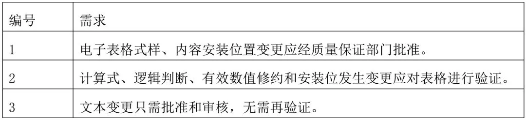 计算式、逻辑判断、有效数值修约和安装位置未发生变更不需要进再验证。计算机发生故障、软件硬件变更及系统恢复后,经过评估后对表格进行再验证。