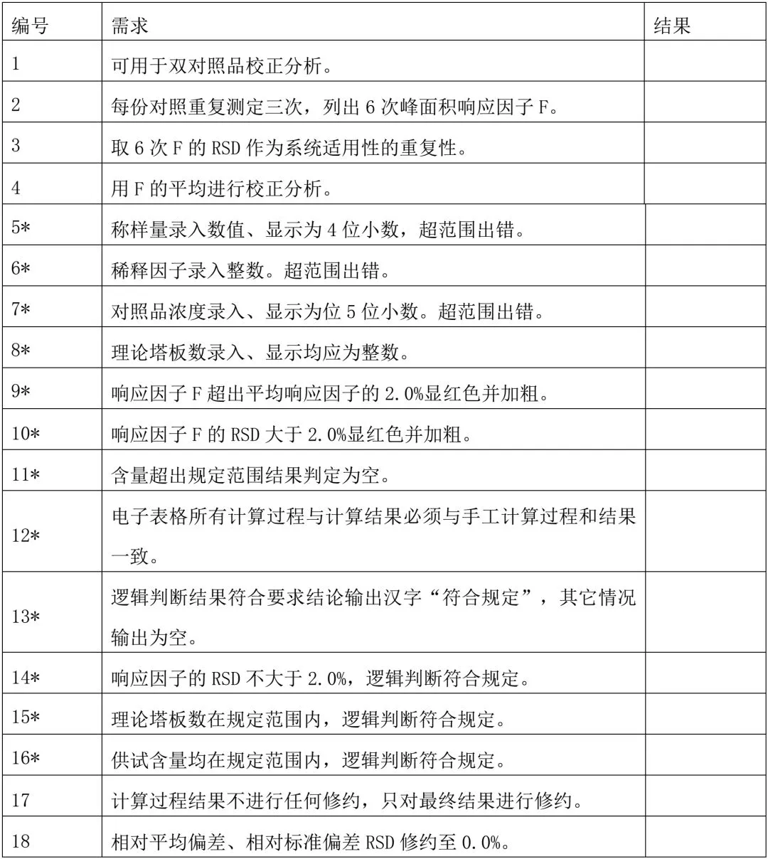 为保证XXX电子表格从设计到应用的整个过程均准确、可靠,对电子表格检验记录进行了风险控制。控制要求见需求说明书XXXX带*项目,控制结果详见XXX验证报告XXXX带*项目。
