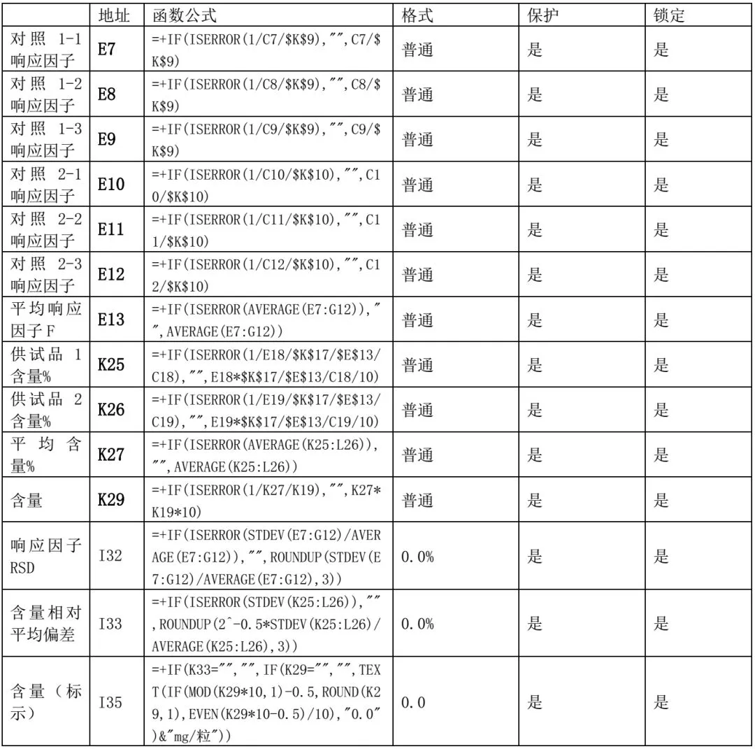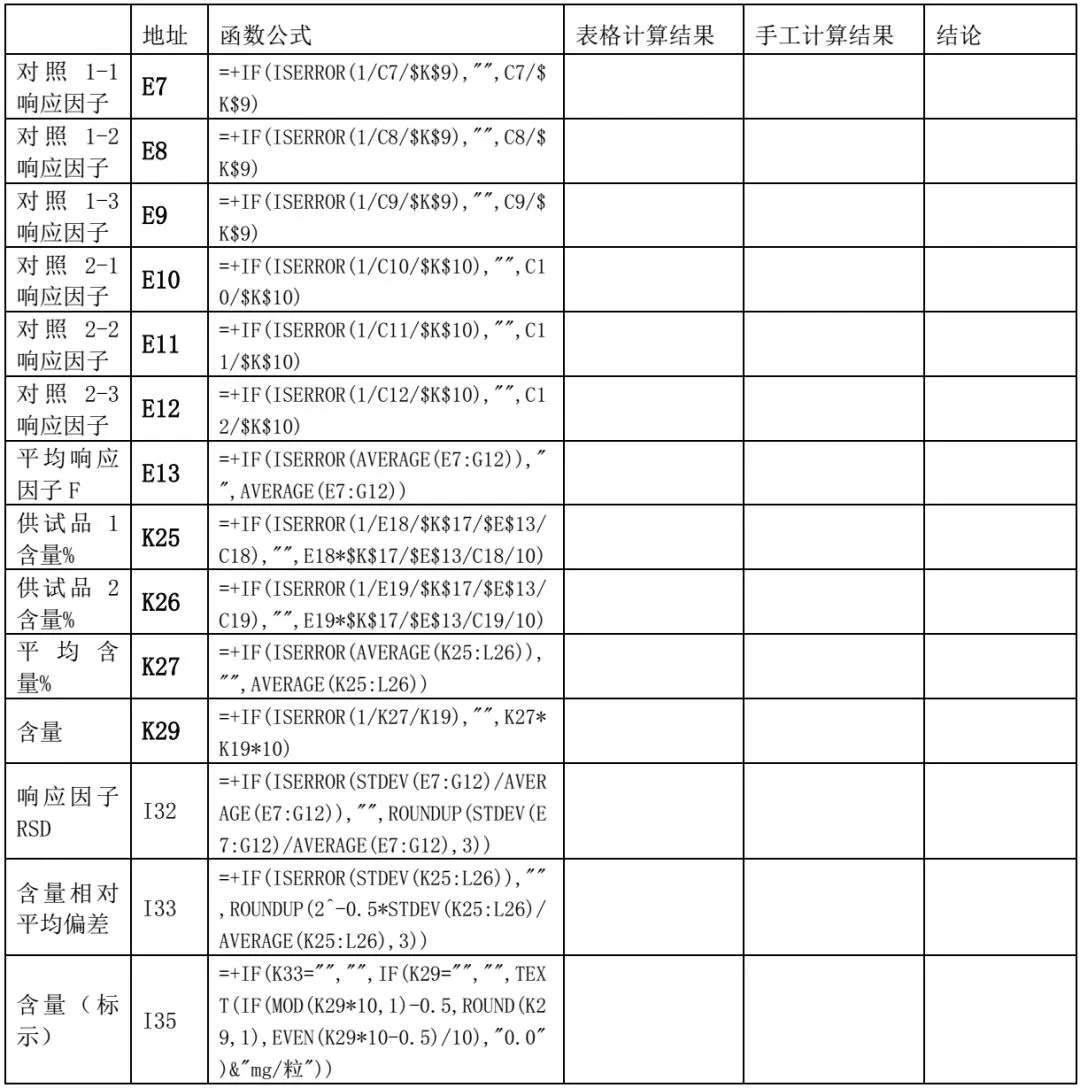 我公司部分检验记录涉及比较复杂运算,普通手工计算占用分析人员较多的时间,且计算过程与结果须经多次复核以才能保证准确无误,不利于工作高效开展。将部分检验记录设计成电子表格可以大量节约分析时间,缩短复核、审核过程。