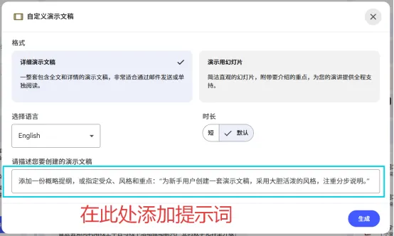 相反,我会这样问AI:"和我一起写生成PPT的提示词,应该从哪些方面去思考?"