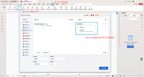 用WPS的PDF转PPT功能,可以直接生成两个版本:纯图片版和OCR版。