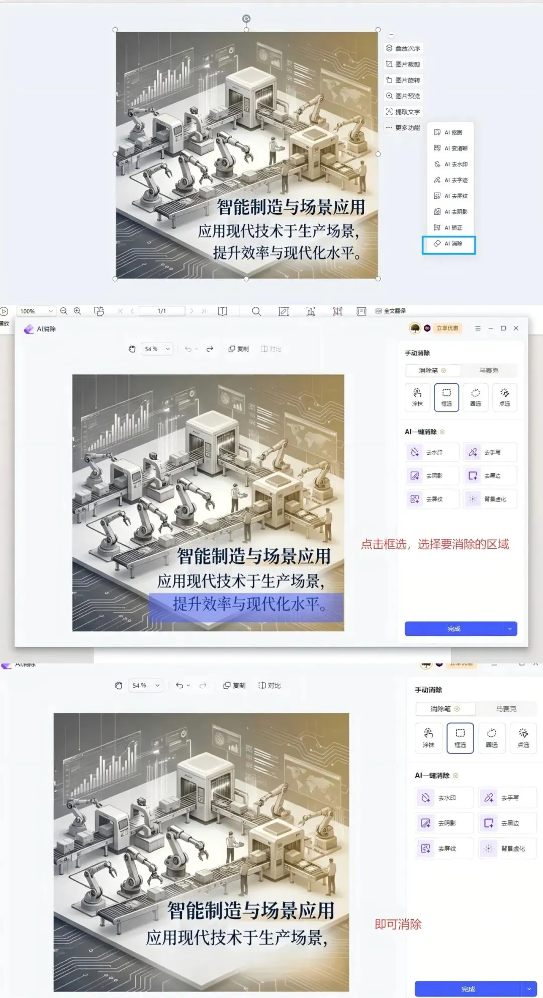 这套流程的本质,是用一个AI的长处补另一个AI的短处。Nano Banana擅长视觉设计但文字生成有不清晰的问题,WPS的OCR擅长文字识别但没有设计能力,组合起来刚好互补。
