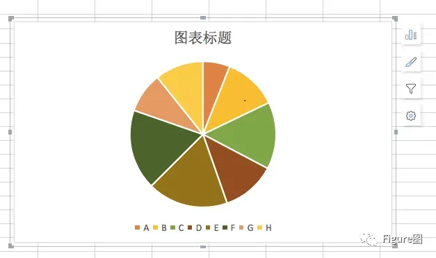 3. 插入后,默认的图如下所示。所有的系列合起来组成一个饼图,系统根据具体数值的大小自动予以分配。