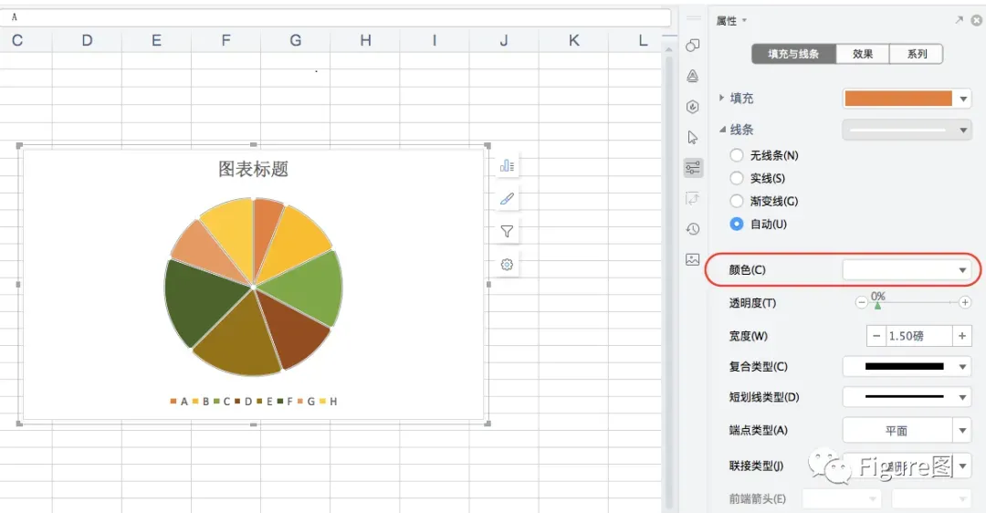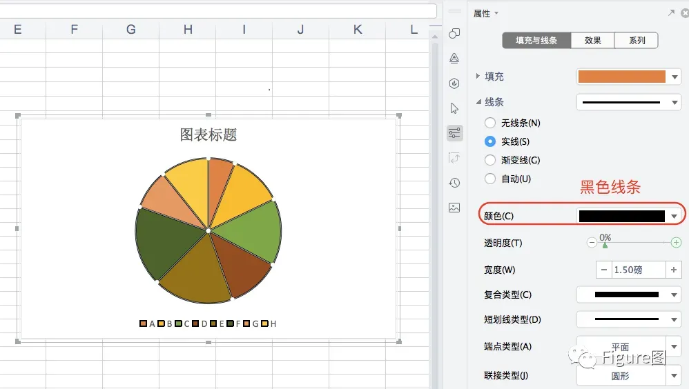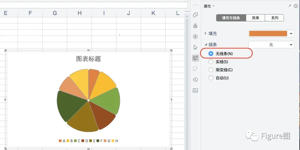 4. 选中图表,在“属性”中我们可以看到这个图的不同系列之间已经用白色线条予以隔开。