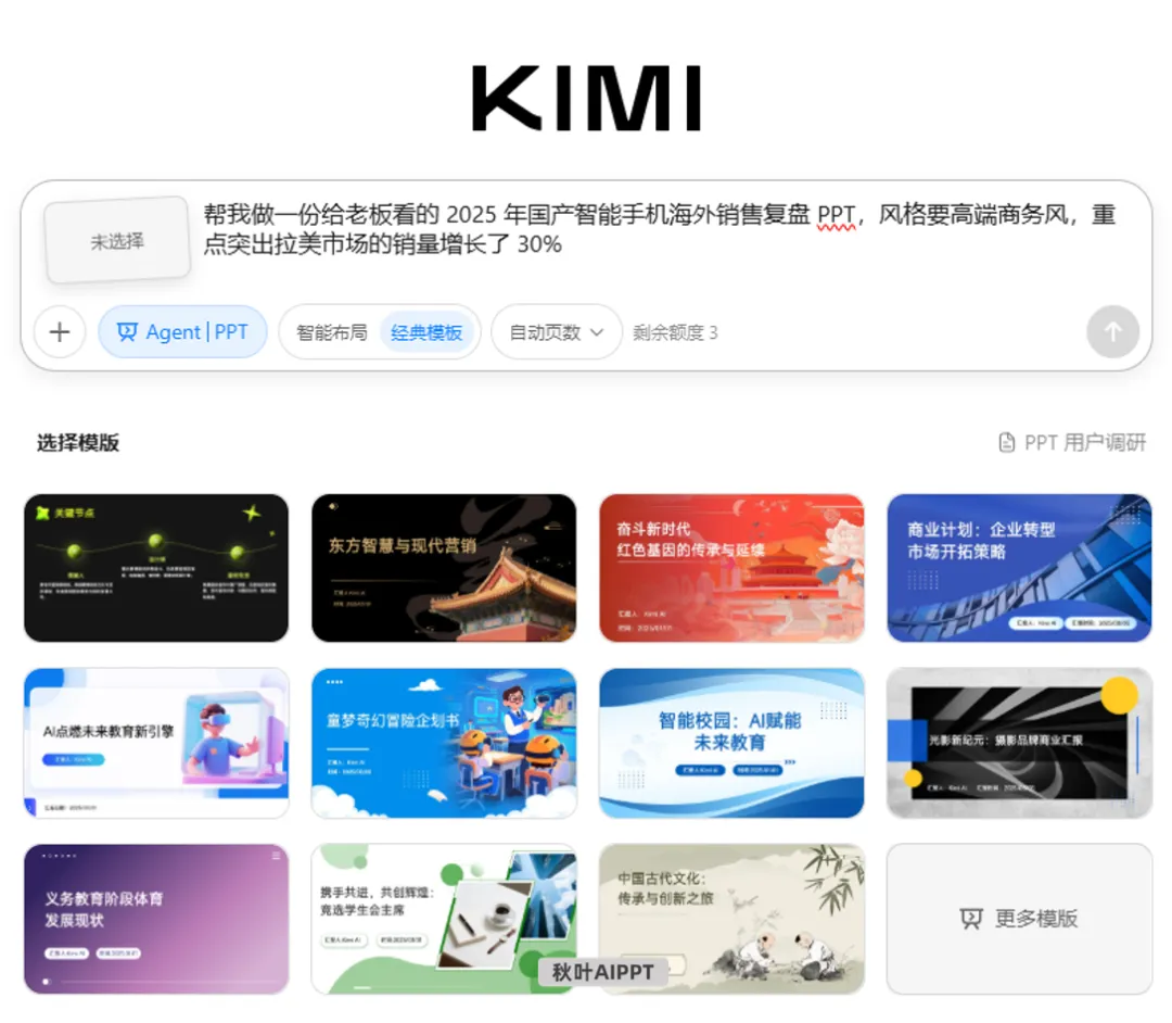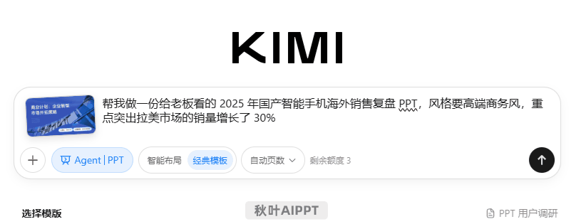 但这次 Kimi 升级后的 PPT Agent,给我们的感觉完全变了,它开始「带脑子」做 PPT 了!