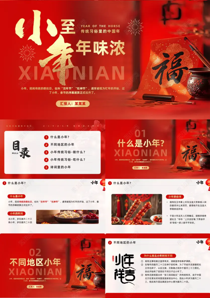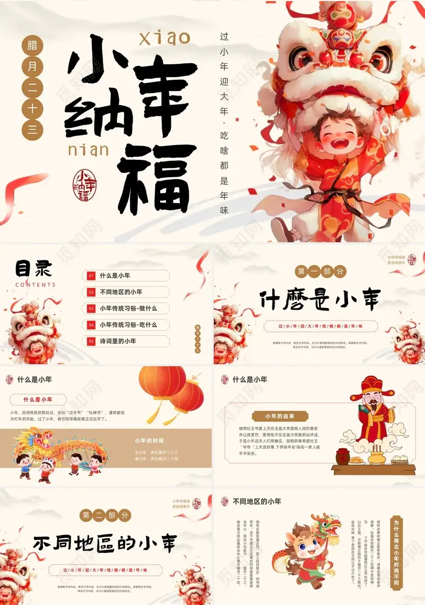 今天小编给大家精选了10套小年主题PPT模板,可用于节日介绍、主题班会、新年宣传等,有需要的可以直接滑到文末下载!