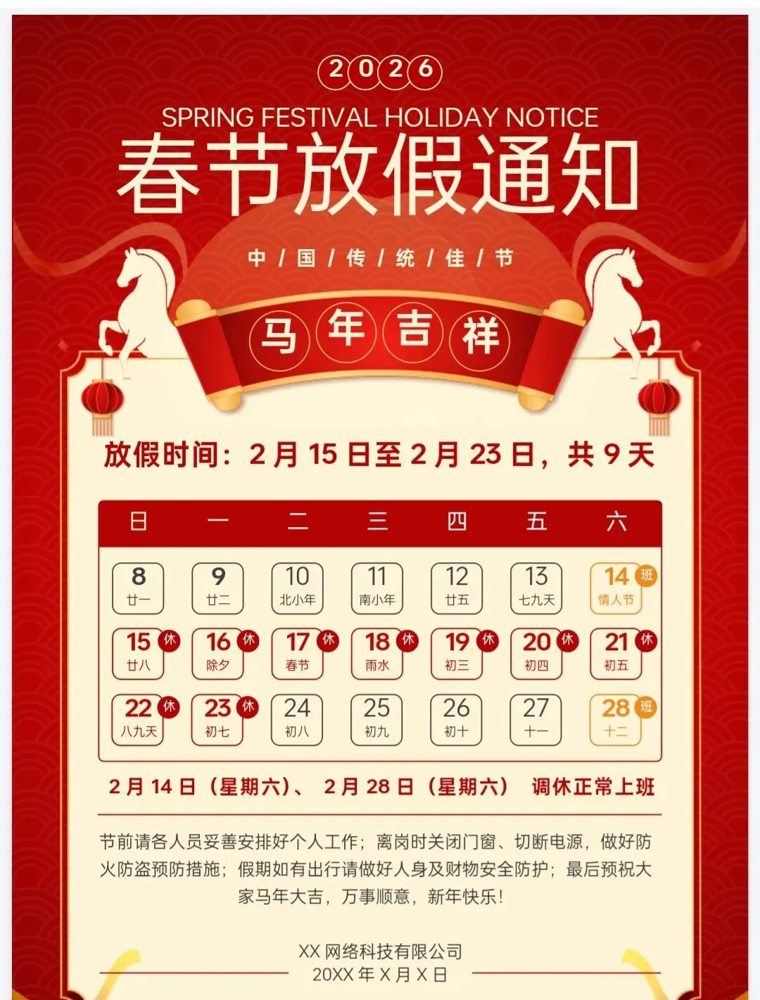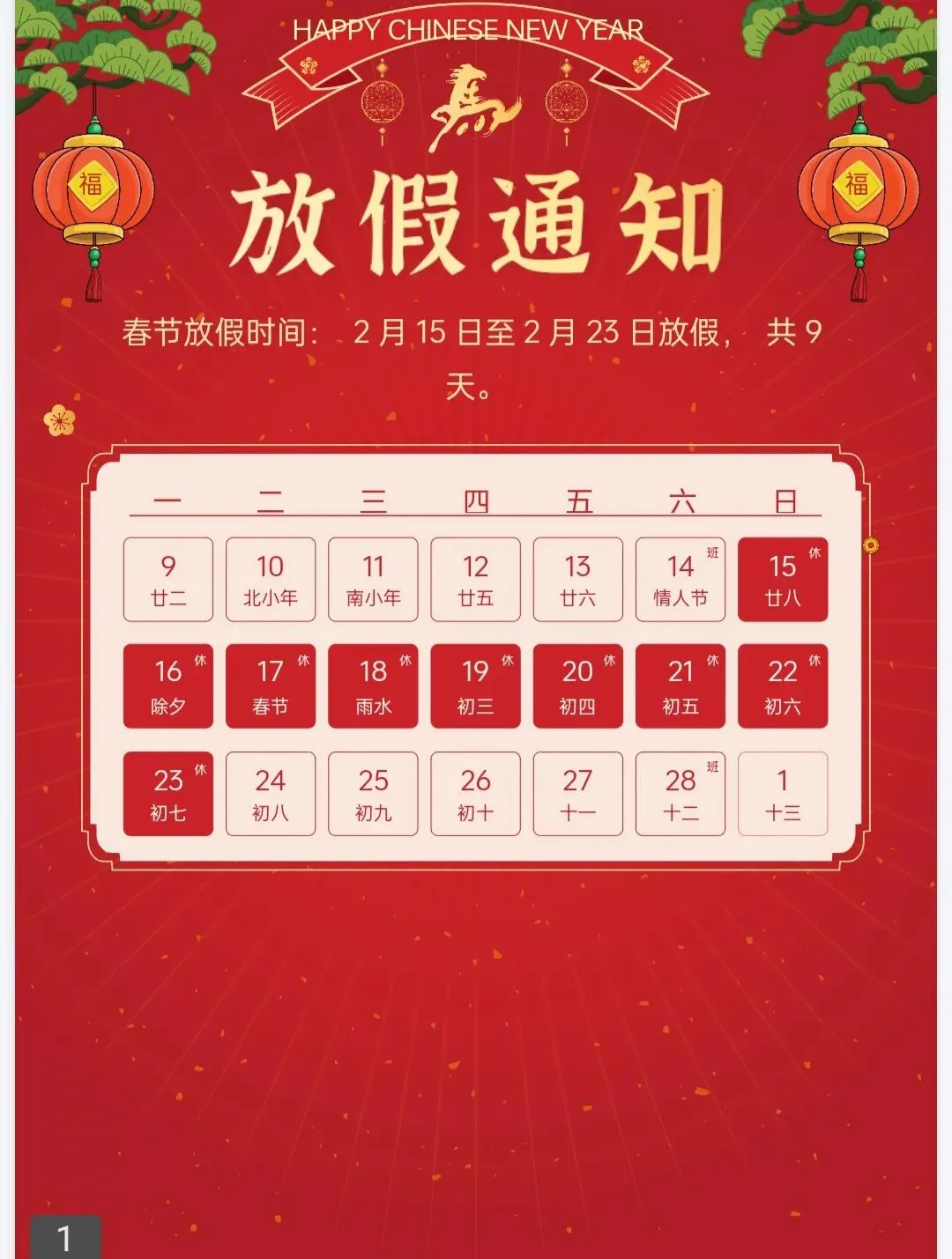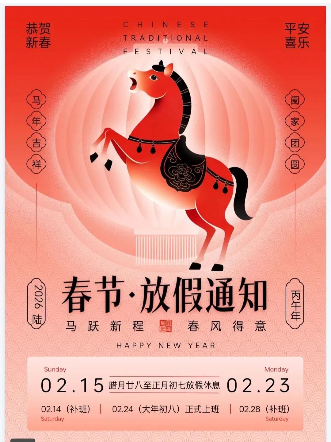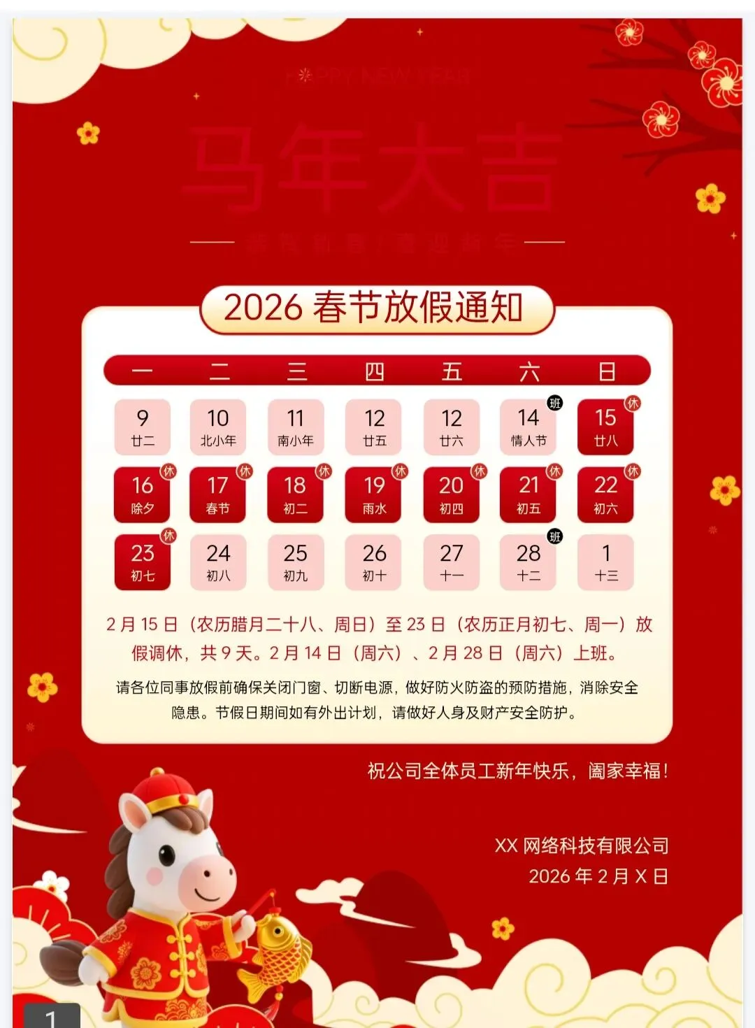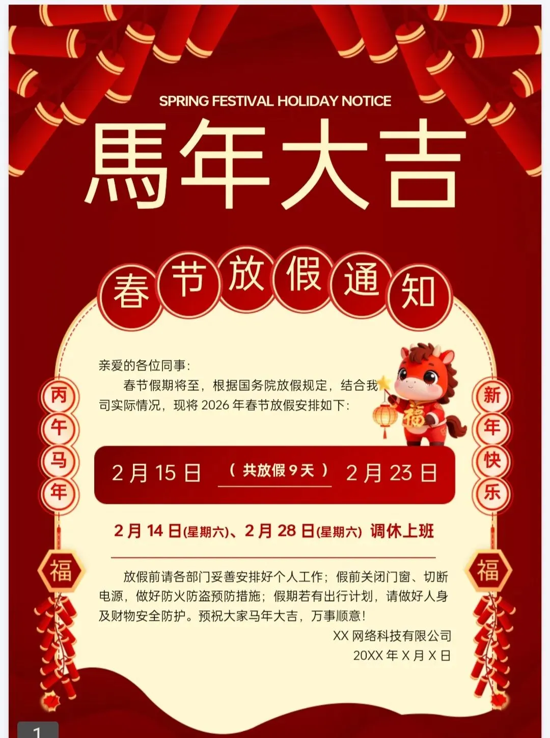马上过年啦!这份春节放假通知PPT大气有氛围感 有格局 可编辑免费下载的模板,请你查收,提前祝你马年大吉,万事如意!