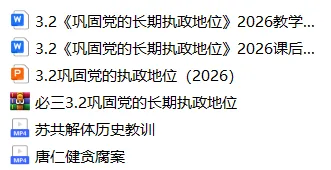 2026版必修三《政治与法治》全套共22框,共制作24个课件(6.1和6.2内容较多杂,故每框制作2个课件),综合探究不做课件,内容将综合融入到前面课件中讲解。主要内容为课件+教学设计+配套练习,课件后有6-8个课堂练习。付费使用,仅全套出,不单出。免费送有12+1的课后练习。一周更新两个,春节休息10天左右,预计2026年4月结束。