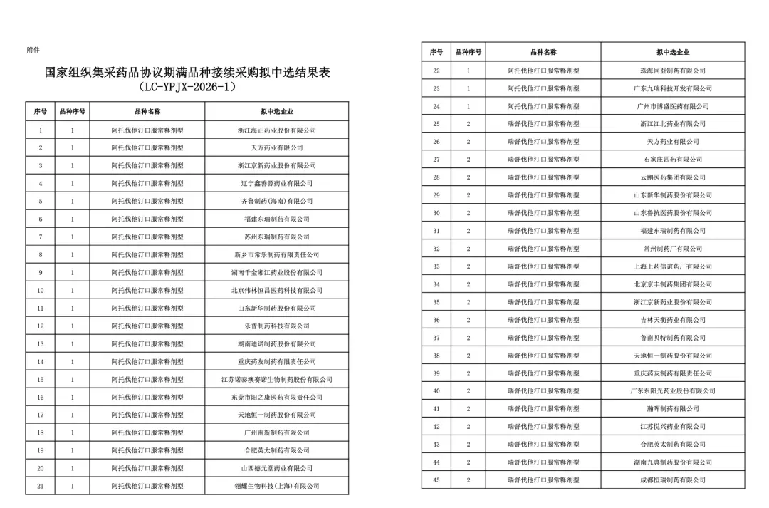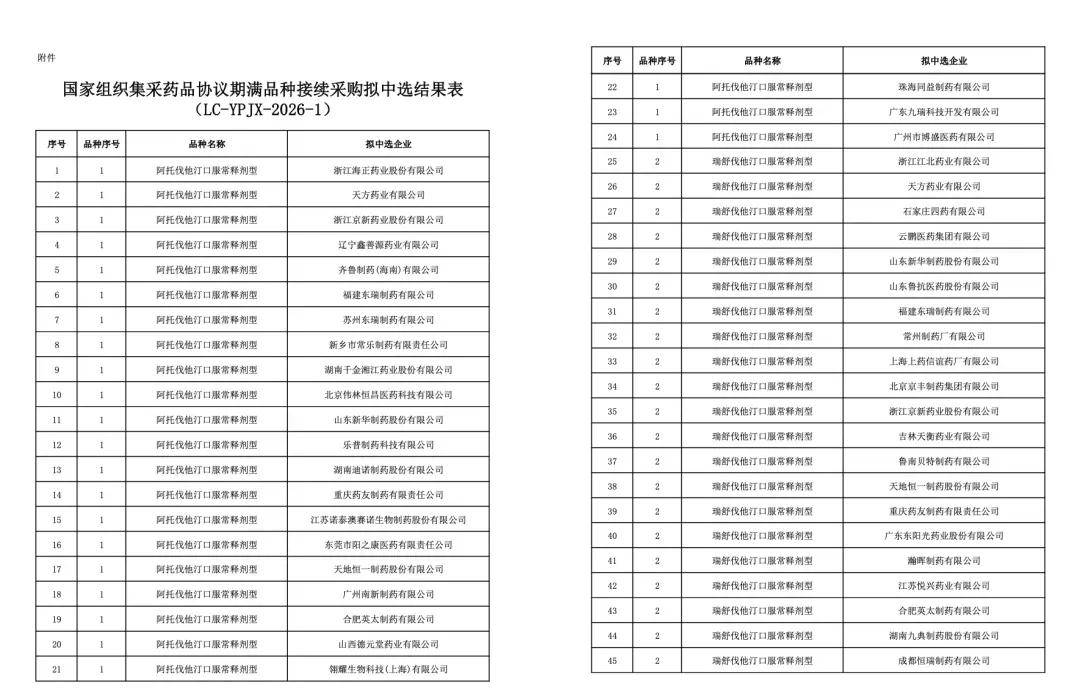 其中,阿托伐他汀、瑞舒伐他汀等常用降脂药均有多家企业拟中选,为临床用药选择提供了多元空间。