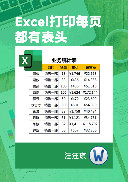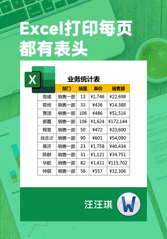 为了更好的预览效果,我们一般都会设置重复表头,让每一页都有表头标题。如何设置呢?今天,小汪老师就来教一下大家。