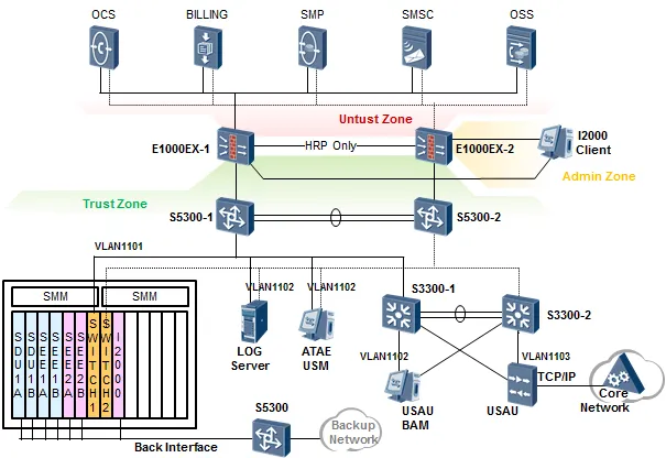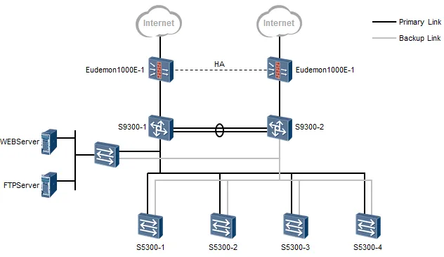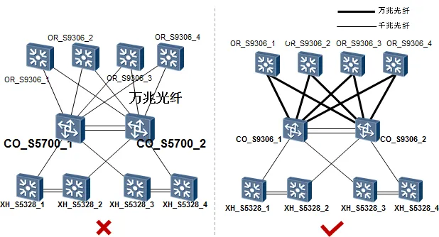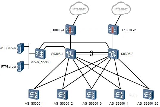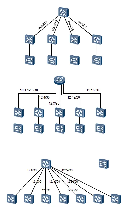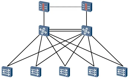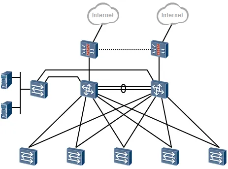 这是一个典型的三层结构的网络,拓扑的大体框架还是非常好分辨的。