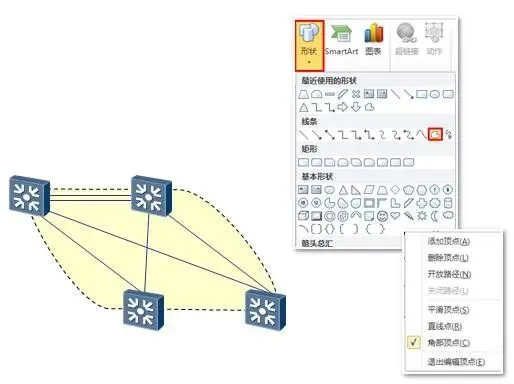 以下是在PPT上绘制拓扑的大体步骤,当然,这只是个参考或建议: