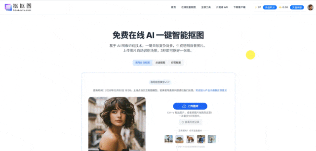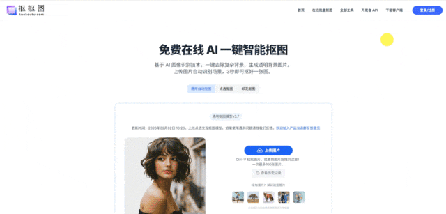 你只需上传或者复制粘贴图片到页面里,点击【开始抠图】,就能一键抠图: