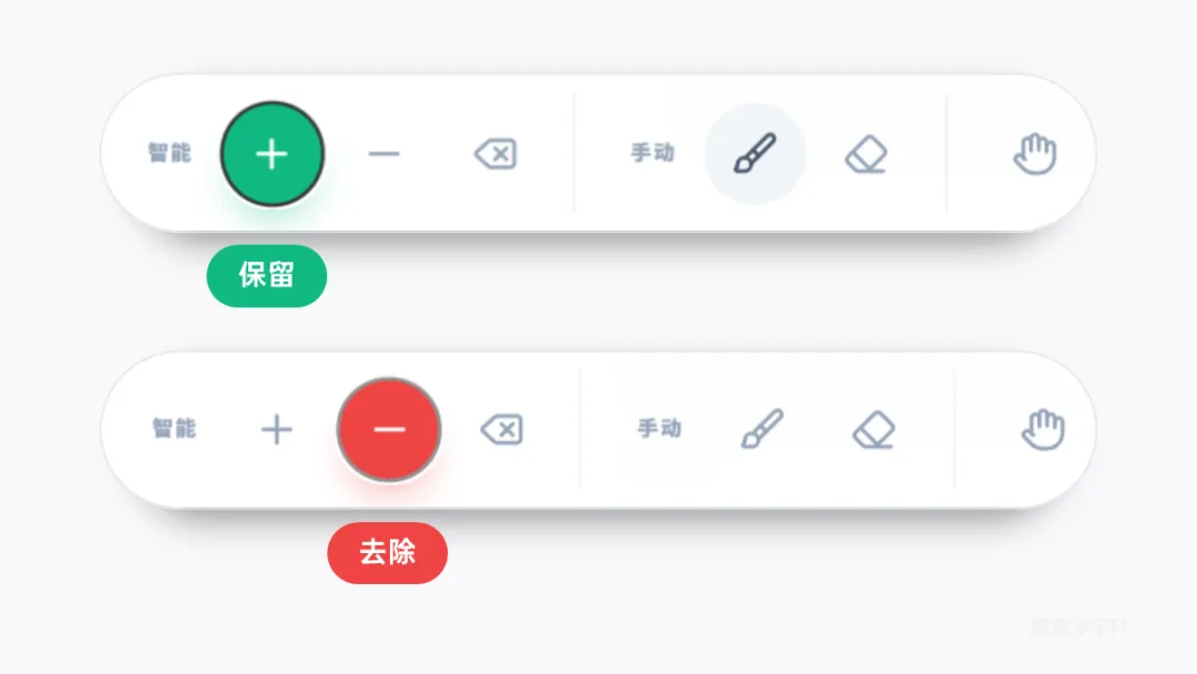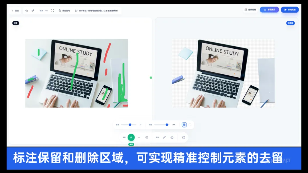 选择【点选抠图】的话,你可以在图片中标注元素保留(绿色),或者去除的区域(红色):