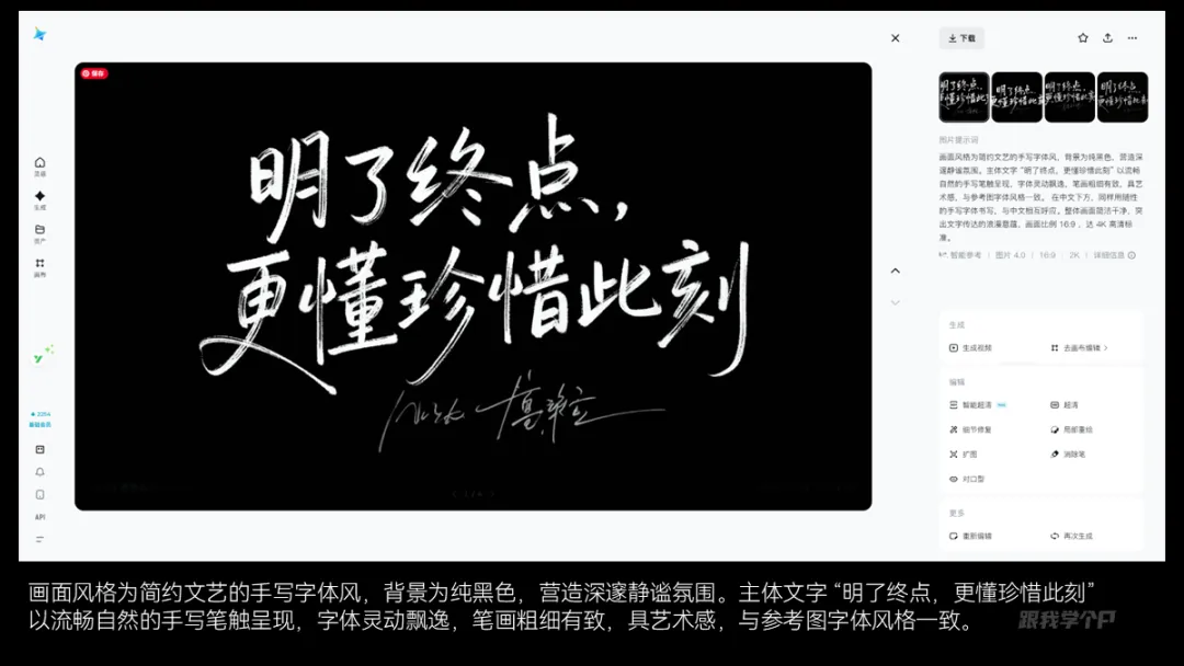 一样的步骤,这次让AI输出文艺手绘字体,年轻帅气: