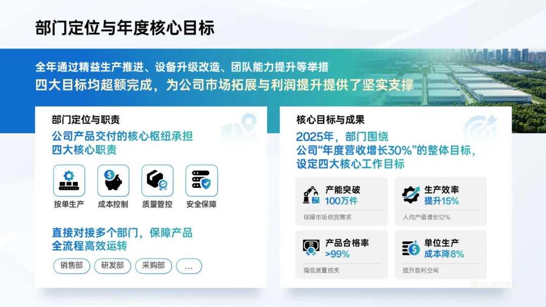模板的内容分类非常齐全,包括了汇报PPT里必不可少的工作回顾、改进亮点、成果展示、逻辑模式等: