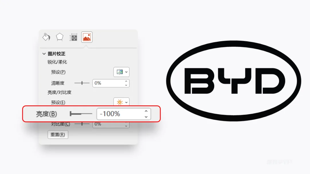 除了图标,还可以是logo,在PPT里把亮度降到-100%,就是一个黑色的logo: