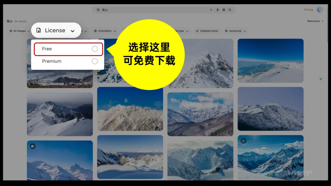 这页内容讲述的是产业的三座大山,直接在免费模式下搜索大山或者雪山,素材还是挺多的: