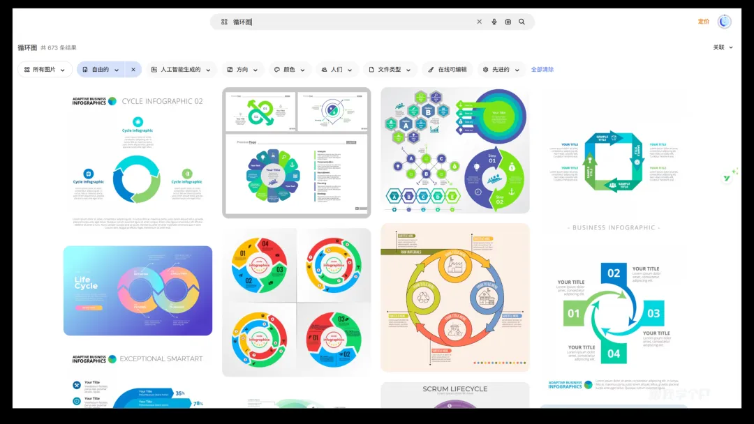 除了图片,你还可以搜索逻辑图,比如循环逻辑关系: