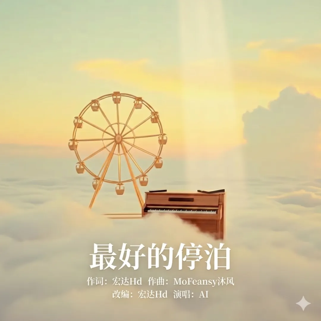 第五首《最好的停泊》:开始挑战“改编”。不再完全依赖AI生成,而是基于已有的旋律进行重塑,这一次,我开始死磕AI演唱的发音和咬字。视频也进化到了新海诚式的动漫风格,每一帧都透着治愈。