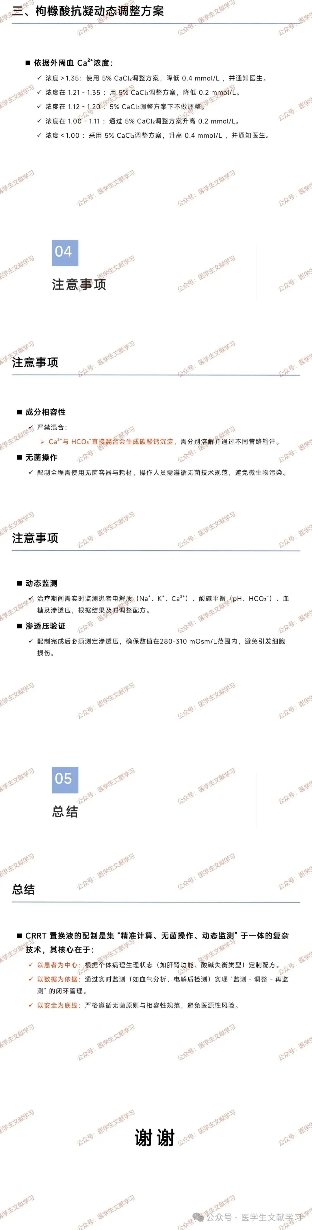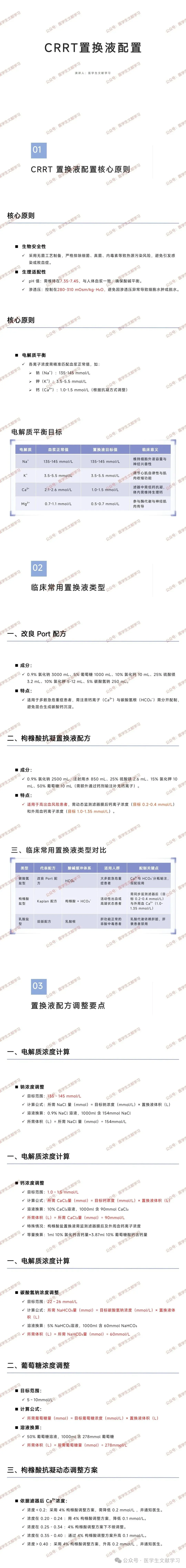 CRRT 置换液配制需兼顾精准计算、无菌操作与动态监测,核心在于: