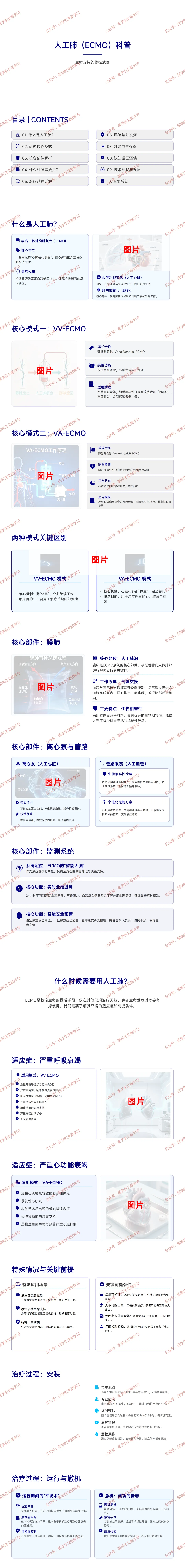 - 核心功能:替代心脏泵血(人工心脏)和肺气体交换(膜肺),将富氧血液输回体内,保障全身器官供氧。
