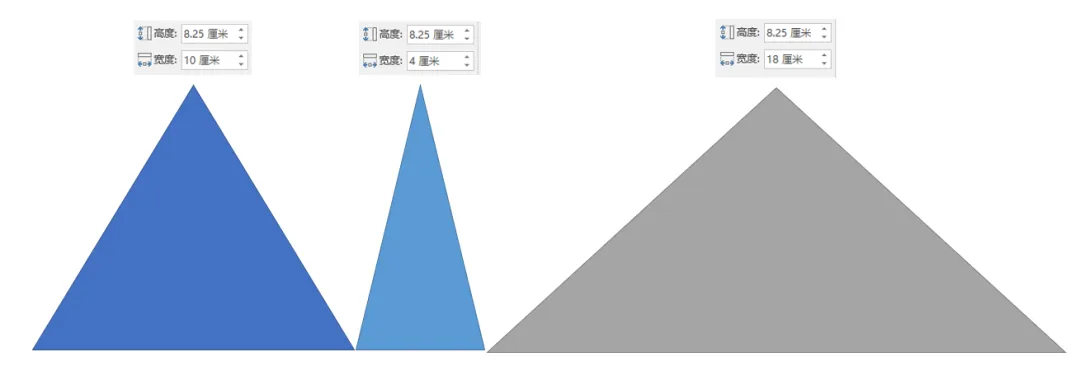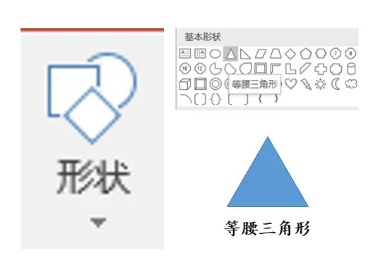 1. 插入一个等腰三角形,调整宽度,作为路径的“起始段”