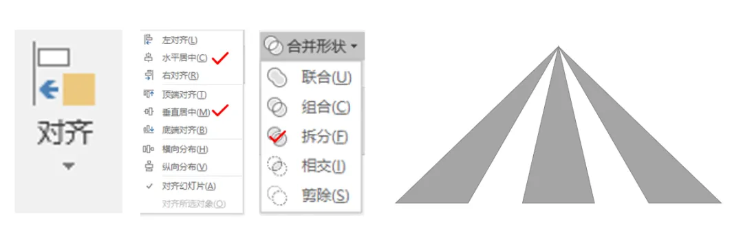 3. 全选三个三角形,执行 「水平居中」+「垂直居中」 对齐
