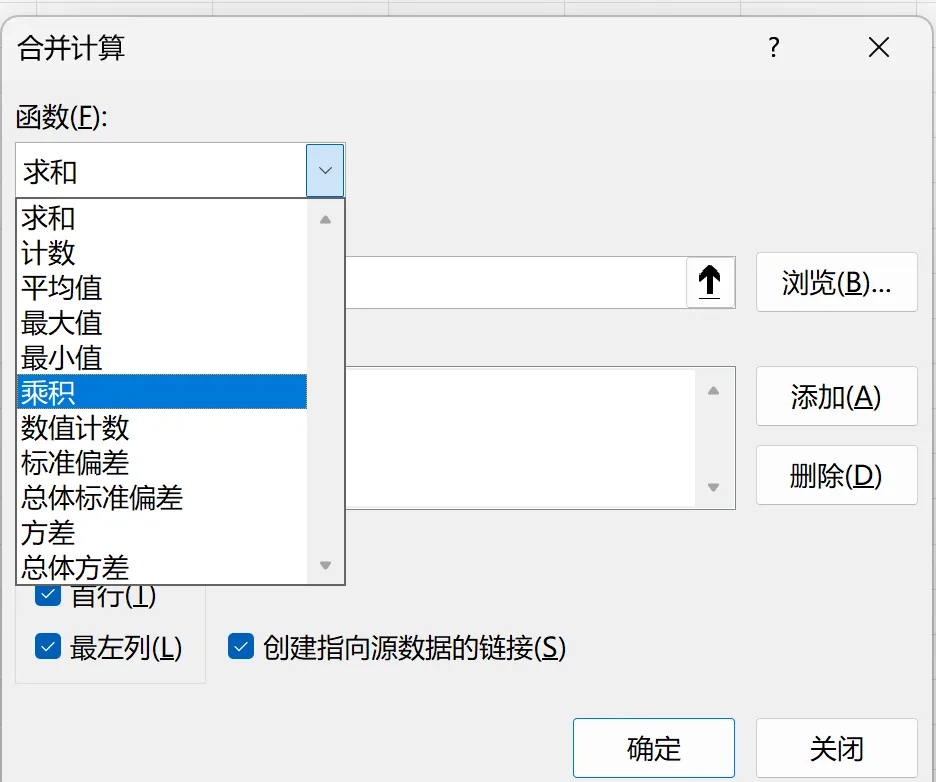 上在演示的都是“求和”的操作,实际上里面内置了多种运算。