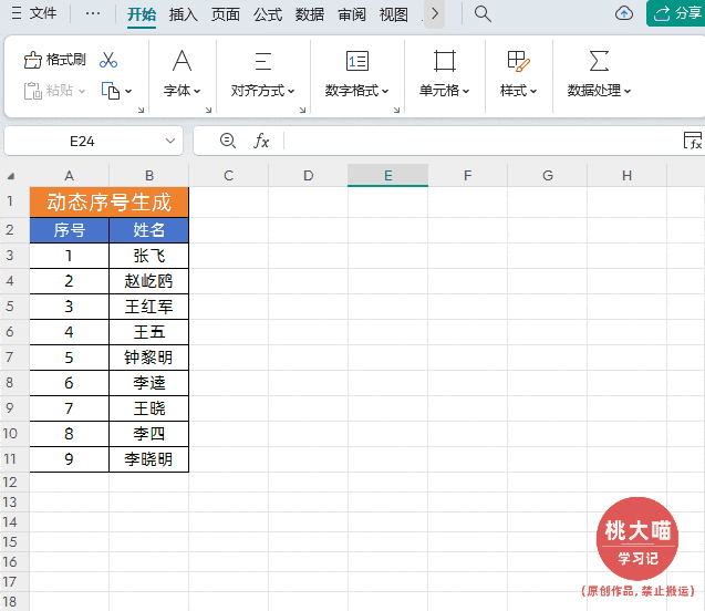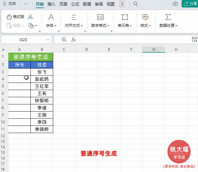 如下图所示,我们需要为名单数据生成普通序号。