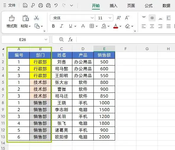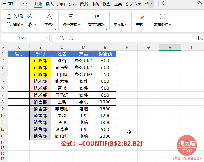 如下图所示,我们要根据部门分别生成序号,不同部门的序号都从1开始,同一部门按顺序递增。