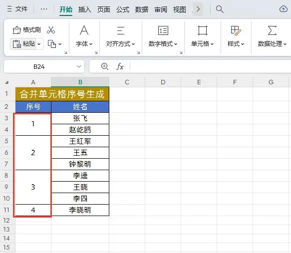 如下图所示,我们需要对合并后的单元格生成序号