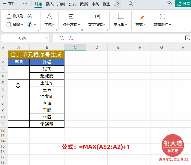 五、对合并单元格序号生成