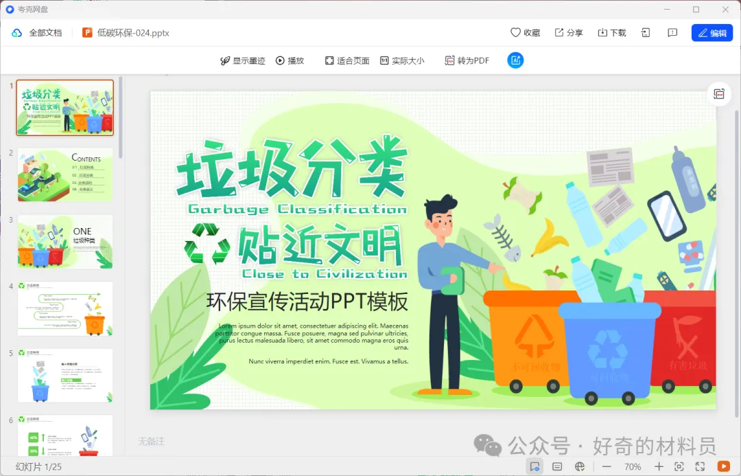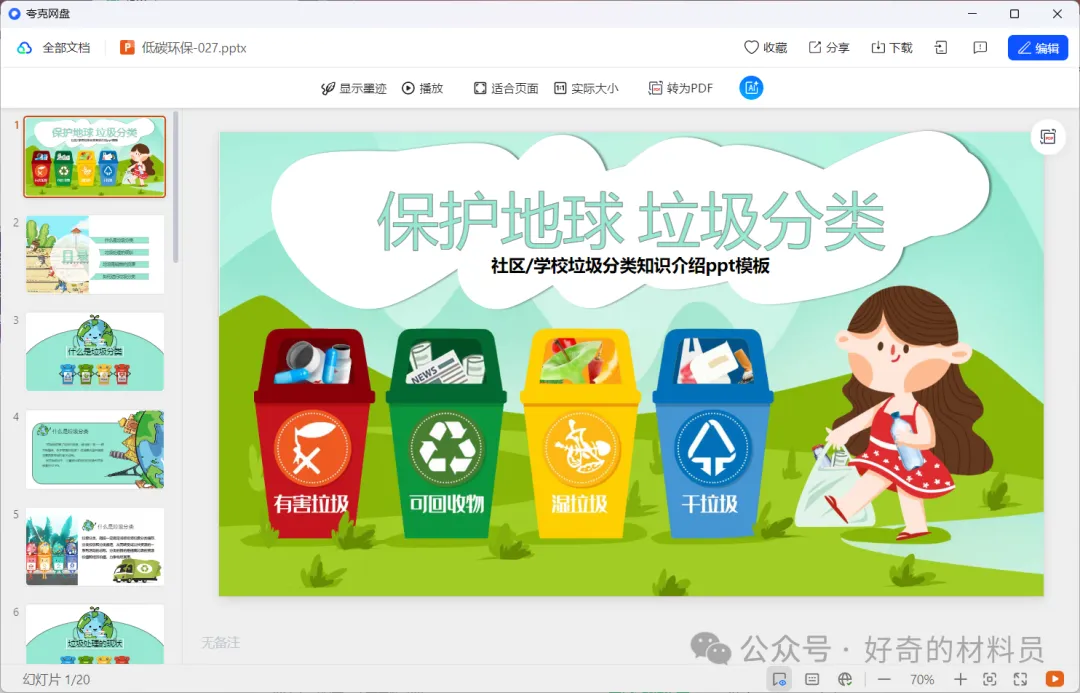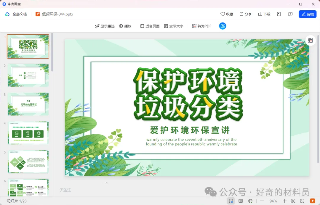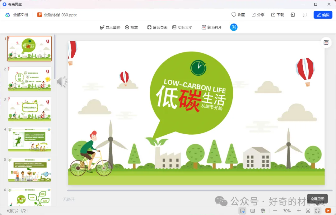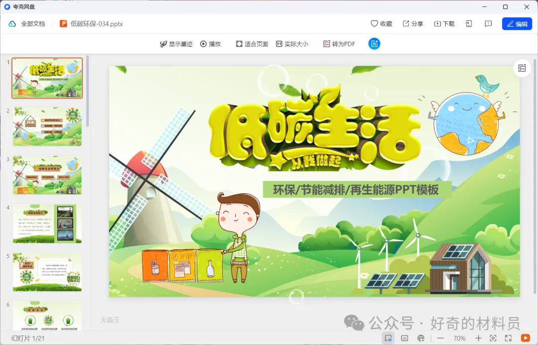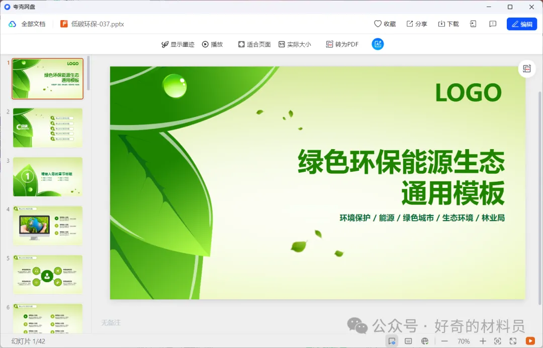 不管在任何行业或者岗位,小编始终相信我们都会用到PPT,但是我们要自己做出模板的话肯定还是要花点时间的。前期小编为大家分享了很多类型的模板,现在小编为大家整理了42套低碳环保主题的PPT模板。大家可以收藏,需要的时候可以直接下载使用。
