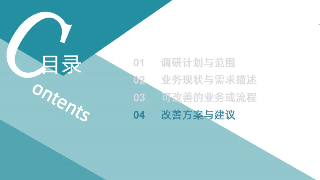 这个方案建议公司通过引入新技术,改进工作流程,实现数字化转型。数字化转型可以帮助公司提高效率,降低成本。
