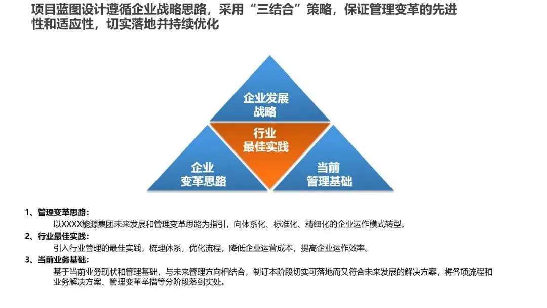 项目采用“6+1”实施模式——6个月集中实施,1个月上线支持,确保快速见效。更值得关注的是,项目蓝图设计采用“三结合”策略:企业发展战略、行业最佳实践、当前管理基础 三者有机结合,保证管理变革既先进又适应企业实际情况。