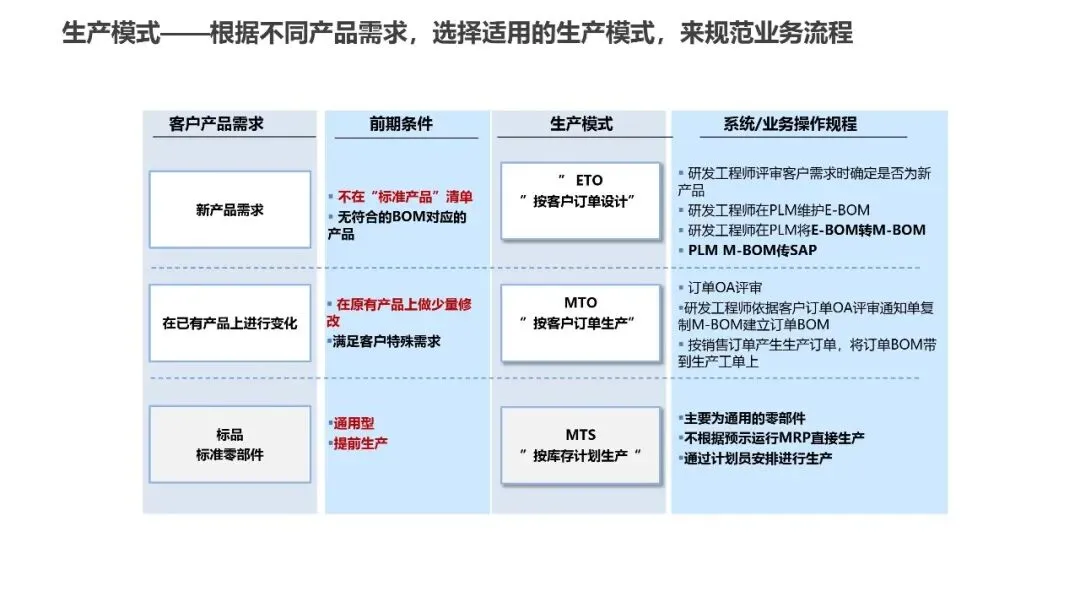 生产计划模块的20个流程围绕三大生产模式展开:ETO(按订单设计)、MTO(按订单生产)、MTS(按库存计划生产)。这种灵活的生产策略能够快速响应客户个性化需求,同时保证标准产品的高效交付。